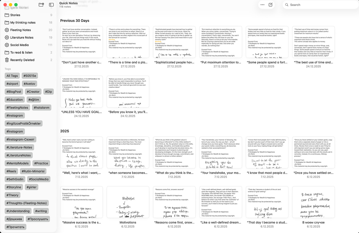 Burada çok net bir hedefimiz var. Dağınık notlar almak değil. Kendi zihinsel ağımızı bilinçli şekilde örmek. Ben buna kişisel Wikipediayı oluşturmak diyorum. Ve bunu iki modla yapacağız.