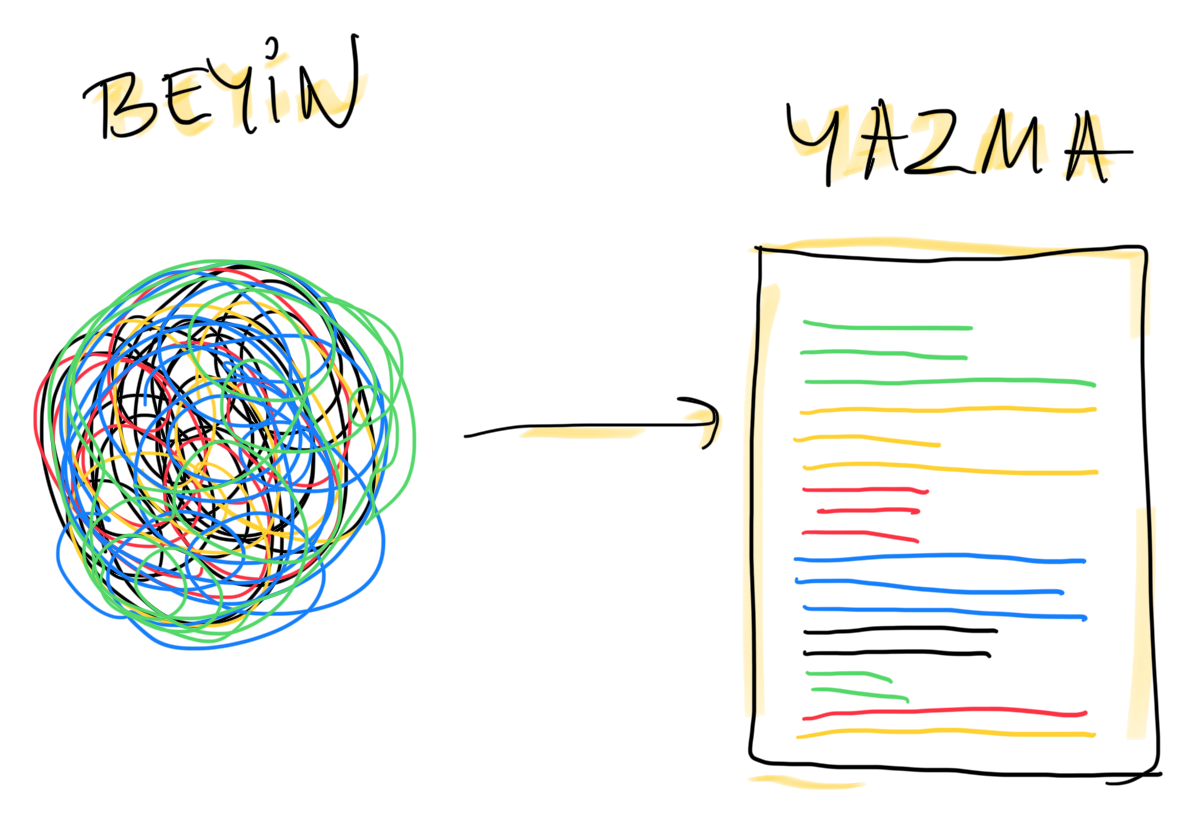 Yazma denince çoğumuzun aklına kompozisyon, giriş-gelişme-sonuç, düzgün cümle, gramer ve imla gibi okuldan gelen bir algı gelir ve Türkçe dersleri yazmayı neredeyse tekeline aldığı için yazmak stresli bir şeye dönüşmüştür. “Hata yapmayayım.”, “Yanlış yazmayayım.”, “Güzel yazamıyorum.” gibi düşünceler zihnimizi meşgul eder.