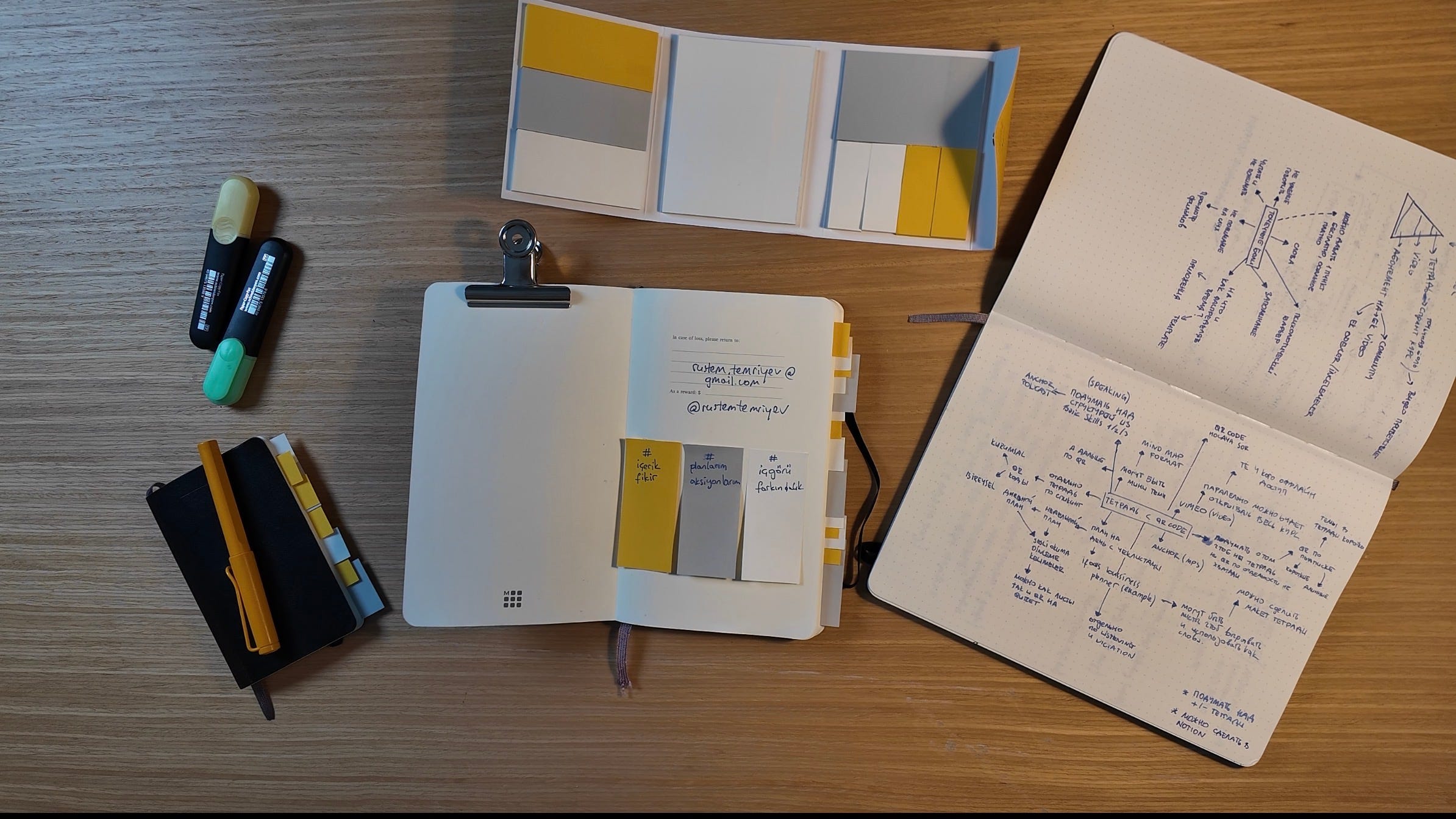 Çoğu insan bu tuğlaları rastgele zihnine fırlatır ve orada bir harabe oluşur. Sen o tuğlaları rastgele bırakma. Sen onlarla inşaat yapacaksın. Sistemin çok basit olsun: Defter kullanıyorsan, renklerin gücünü kullan. Sarı etiketler örneğin “Öğrenme” olsun, Maviler “İş fikirleri”, Yeşiller “Sağlık”...